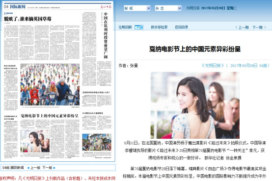 2017年5月30日,《光明日报》第04版(国际新闻)报道了我校2003届毕业生、青年导演李睿珺执导的电影《路过未来》于20日亮相第70届戛纳电影节“一种关注”单元,获得现场专家和观众的一致好评,这也是今年华语电影唯一入围戛纳的影片。4月28日,中国电影网也对该电影《路过未来》入围戛纳国际电影节“一种关注”单元进行了相关报道。李睿珺于2003年毕业于山西传媒学院(原广播电影电视管理干部学院),其导演的多部影片获得国际国内多个电影节奖项。