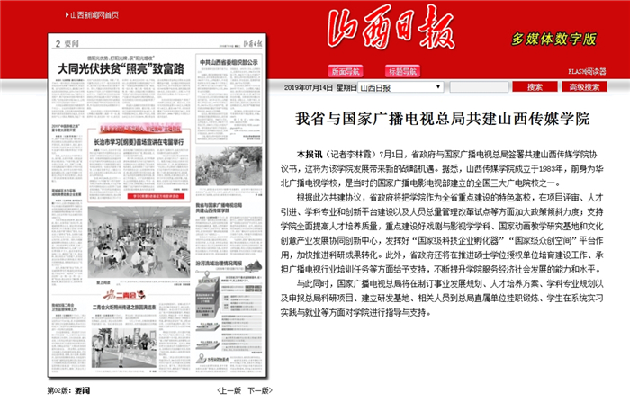 山西日报——我省与国家广播电视总局共建山西传媒学院