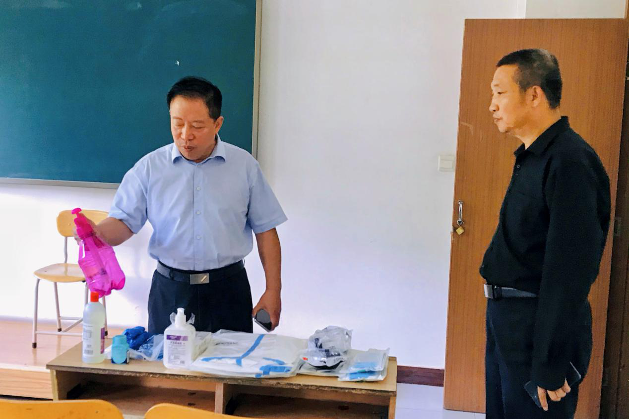 验收组实地查看了校门口临时隔离观察室、学校卫生所、医学隔离观察区、物资储备室、食堂、学生公寓、教室等多个区域,仔细查看了学校开学工作方案和应急预案,详细了解了学校返校要求、消毒和防疫防护物资储备等情况,并听取了学校领导汇报学校在疫情防控过程中所做的工作。