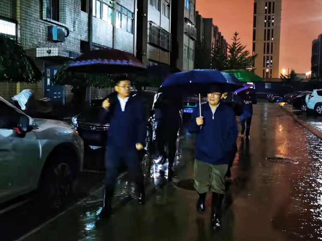 校领导一行冒雨视察了雨水倒灌严重的3号楼地下室、6号楼房屋漏水住户、7号楼房屋漏水住户、传达室、大门西侧围墙和低洼路段。视察中,详细了解雨水倒灌原因、地下室排水情况,向现场工作人员表示问候。校领导来到房屋漏水严重的李克萌、赵健和张晓嫣家中,对教职工表示慰问,对给大家生活上带来不便表示歉意。