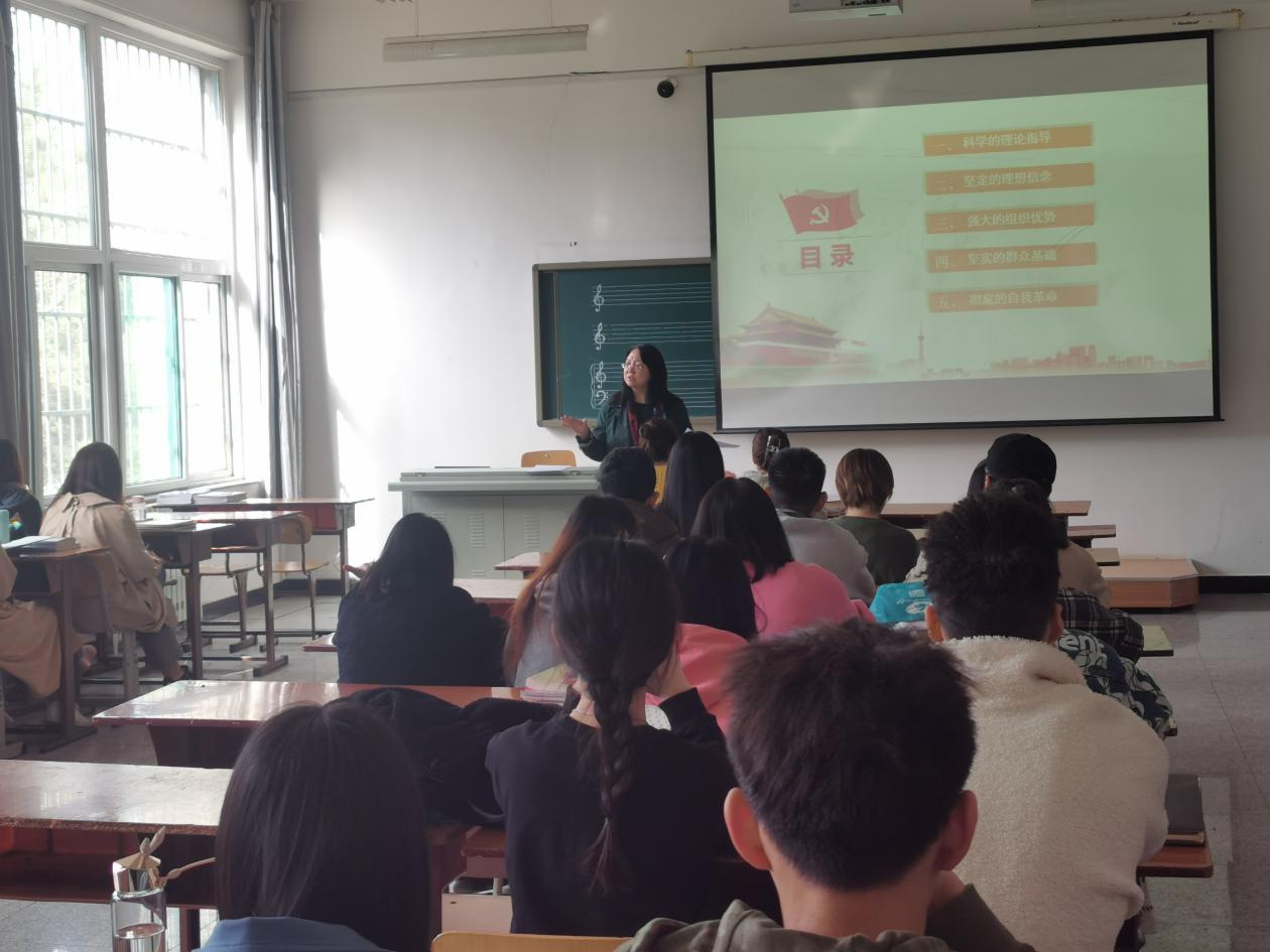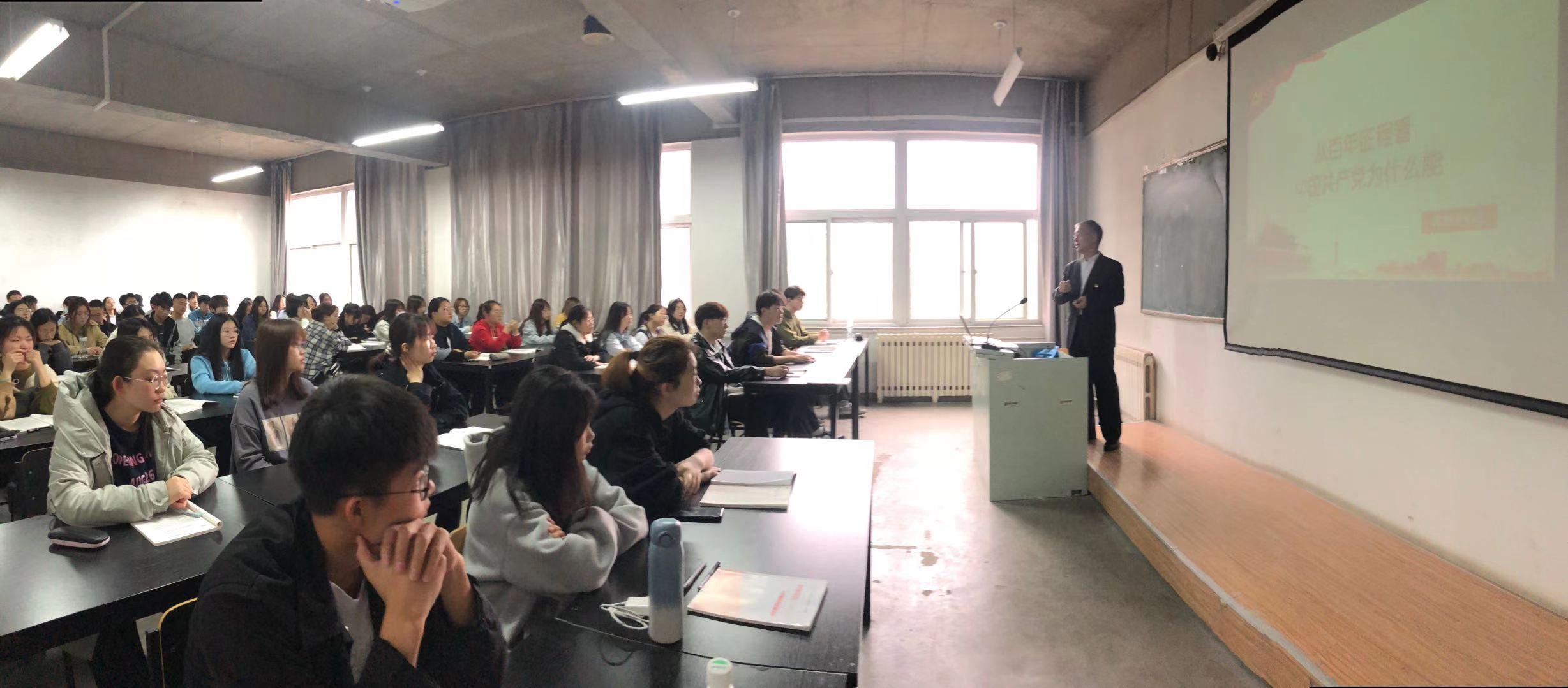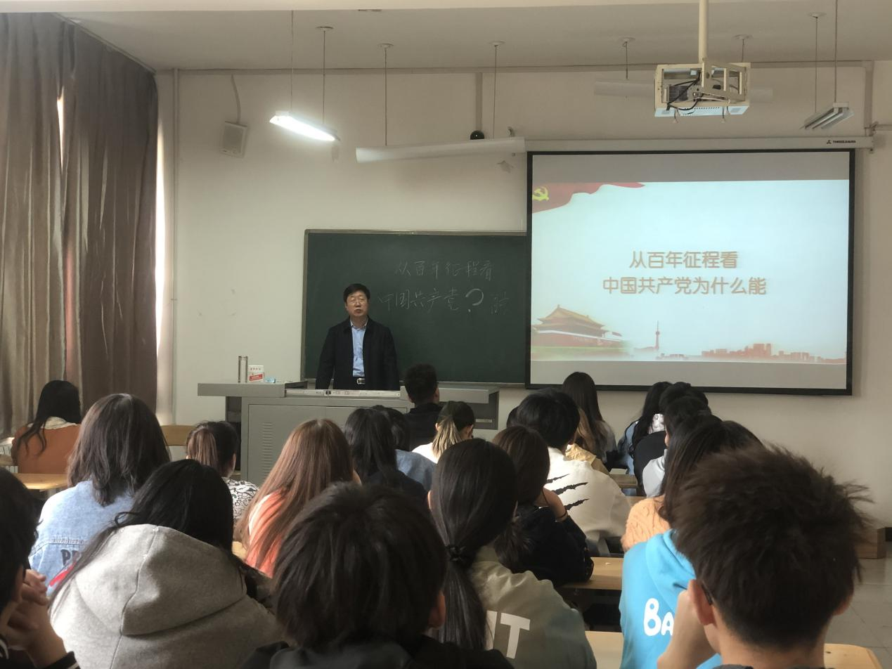 校领导充分发挥自身学科背景和工作经历优势,用平实的语言,条理清晰、深入浅出地为同学们详细阐述了中国共产党何以从一叶扁舟到巍巍巨轮,既有理论高度,也有实践深度和现实温度。