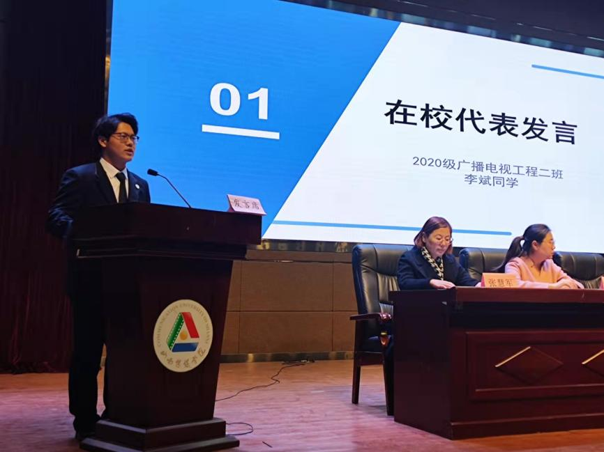 本次会议共有六项议程,在校生代表、新生代表及教师代表张慧军老师分别发言,并表彰了2021级军训优秀班集体及优秀个人,鼓励全体2021级学生踏实学专业,积极去实践,带着坚定理想信念,发扬优良学风,开启新篇章。