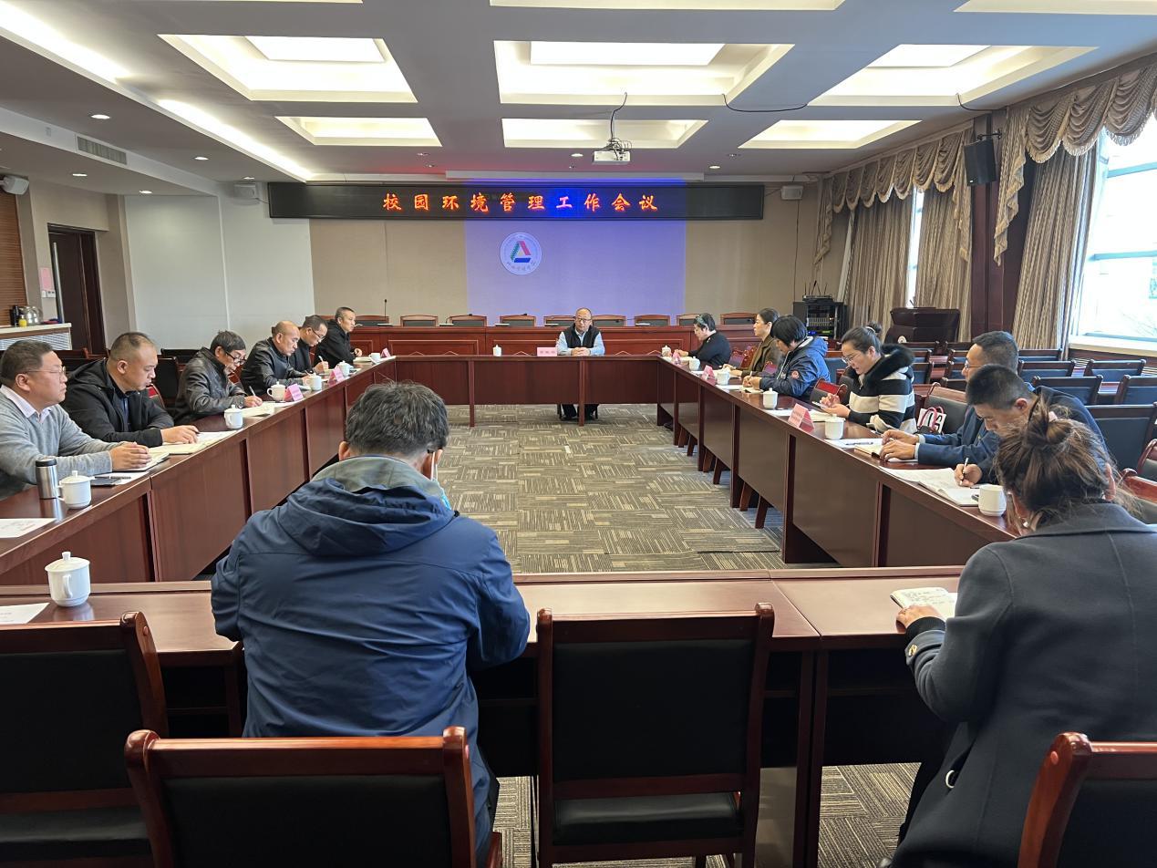 11月16日下午,后勤保障部召开校园环境管理工作会议。副校长管晓刚、后勤保障部部长王淑娟、副部长武福清、各科室负责人以及虹吉物业、立丰物业、嘉顺物业、青青草园林绿化等校园环境服务单位代表参加了会议。会议由后勤保障部副部长武福清主持。