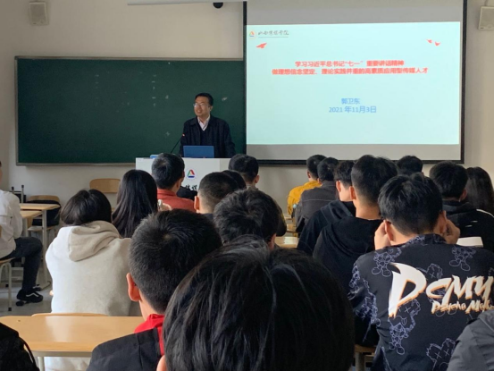 11月3日上午,郭卫东副校长走进文博楼B204教室,为2021级数媒技3班的学生讲授了一堂主题为“学习习近平总书记“七一”重要讲话精神”的“开学第一课”。
