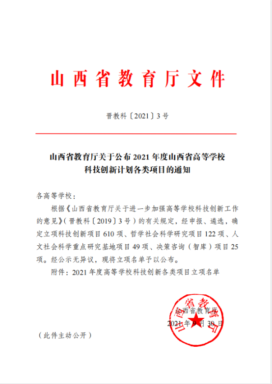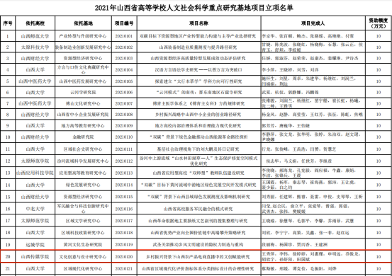 9月30日,山西省教育厅公布了2021年度山西省高等学校科技创新计划各类项目评审结果(晋教科〔2021〕3号),中心王秀萍教授申报的科研项目《乡村振兴背景下山西农产品电商直播中的文创赋能研究》立项2021年山西省高等学校人文社会科学重点研究基地项目(项目编号:20210120)。