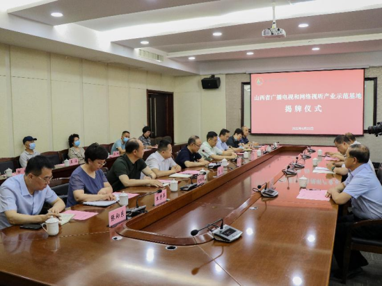 随后,赵晓春局长和吴刚书记共同为山西省广播电视和网络视听产业示范基地揭牌。