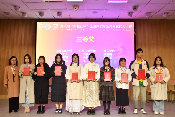 经过激烈角逐,大赛最终评选出特等奖1名、一等奖3名、二等奖5名、三等奖5名。其中,文化创意学院2024级广告策划班刘佳珊、孙悦童、王子昂组成的队伍斩获特等奖,并代表我校参加跨文化能力大赛山西省赛,荣获省赛三等奖;播音学院2024级播音4班宫琳玥、金政合、游淼淼,新闻传播学院2024级广电学2班邱晓桐、赵雪与视听学院2024级电视编导2班成旭冉组成的联合队伍,以及新闻传播学院2024级网新1班李瑞芳、王筱雅、赵艺佳组成的队伍荣获一等奖。