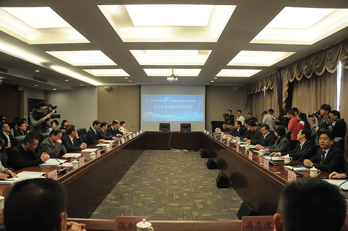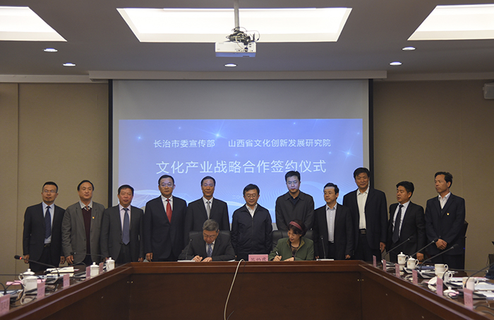 4月18日,山西省文化创新发展研究院与长治市委宣传部文化产业战略签约仪式在我校举行。省委宣传部副部长董晓林、省委宣传部文化产业处处长郭跃鹏,长治市委常委、宣传部部长孙刘琳,山西省文化创新发展研究院院长、我校党委书记张汉静,院长王建国、党委副书记刘锐、副院长张永德、武升平出席。长治市委宣传部相关部门负责人、长治市各市、县、区委宣传部长及长治市部分企业代表,我校相关部门负责人参加。会议由副院长郭卫东主持。