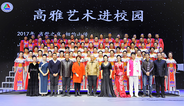 此次来我院演出的团队是山西演艺集团附属合唱团。该团成立于2013年7月,是山西省广大合唱爱好者“圆一个唱好歌的梦”而自愿加入结合的非营利性群众团体。他们本次带来的合唱曲目都是以 “黄河水长流”为主题的山西民歌。在华夏大地上,被誉为民歌海洋的只有山西省,五千年沧桑岁月,以合唱的方式呈现山西民歌并走进大学校园是第一次。
