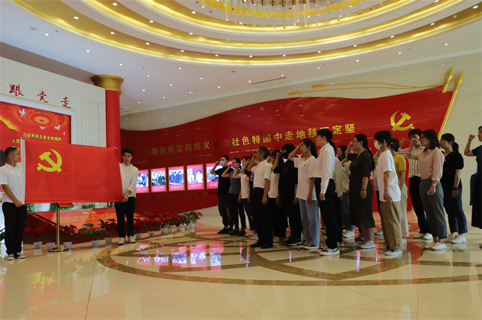 面向党旗,大家庄严宣誓,重温入党誓词,铭记“一句誓言,一生作答”的庄严承诺。