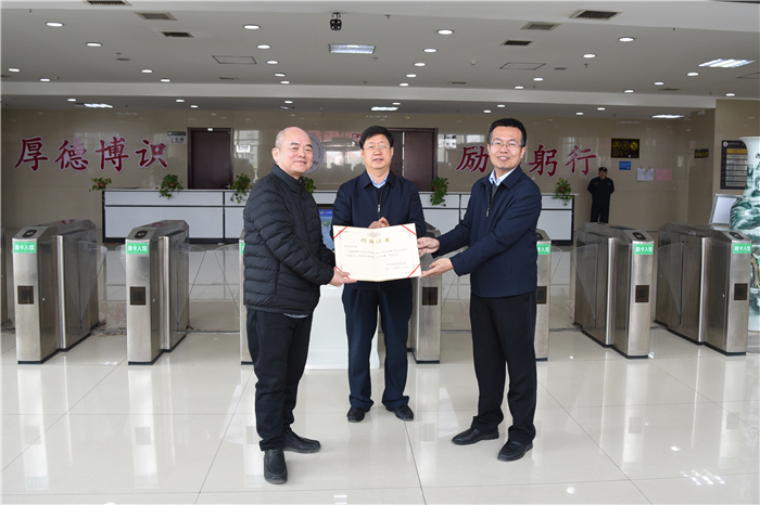随后,刘红庆向学校图书馆捐赠《人民艺术家郭兰英》、《向天而歌》等13种共66册图书,郭卫东为刘红庆颁发捐赠证书。刘红庆向现场的领导、师生介绍本次展览展出的图书、电视节目、乡土纪录片、舞台剧等作品,并与大家合影留念。