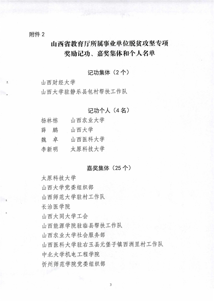 此次专项奖励,旨在深入学习贯彻习近平总书记视察山西重要讲话重要指示和关于扶贫工作的重要论述,通过奖励先进、树立典型,激励我省事业单位工作人员不忘初心、牢记使命、担当作为、干事创业,继续巩固脱贫攻坚成果。学校将以此次奖励为起点,继续团结带领广大师生员工,在下一步全面推进乡村振兴工作中作出新贡献。