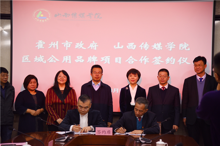 随后,我校文化创意与管理学院院长申明远、霍州市市政府党组成员郭惠民分别代表双方签约。