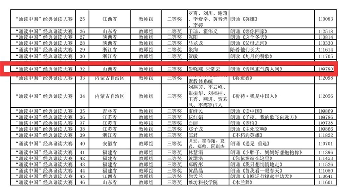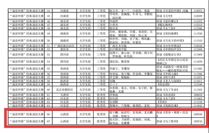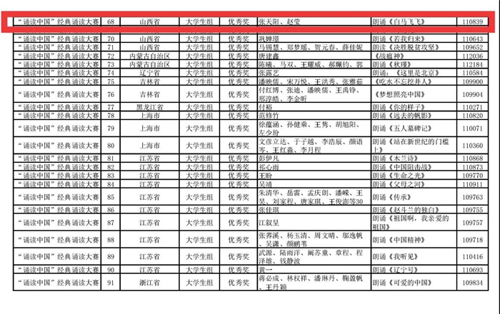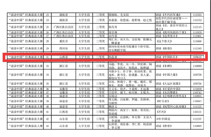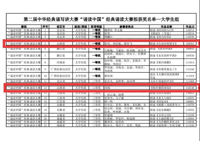 在不久前刚揭晓的第二届中华经典诵写讲大赛“诵读中国”经典诵读大赛总决赛奖项中,我校播音主持学院师生喜获佳绩。其中,师生创作的作品《台风中的坚守》获得一等奖,《杨开慧的来信》获得二等奖,《中国机长》《清风正气荡人间》两部作品获得三等奖,另有三部作品《青春·理想·信念》《为了胜利》《白马飞飞》获得优秀奖。彭晓燕老师获得大赛设置的指导教师奖。