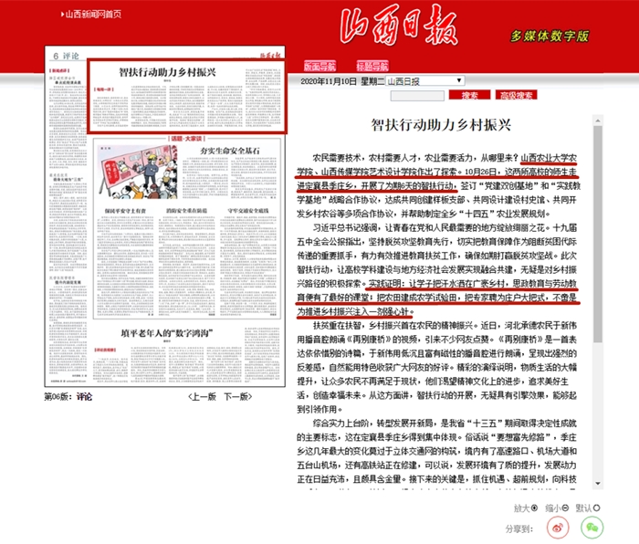 近日,《山西日报》以《智扶行动助力乡村振兴》为题,刊发长篇评论,高度评价我校“智扶乡村振兴”项目。