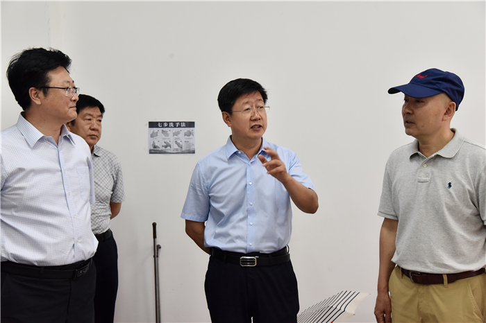 闫润德一行在党委书记王亦农、校长李伟的陪同下赴我校戏剧影视研究中心对我校戏剧影视研究中心主任、省政协委员王涵的工作环境和办公条件进行了走访,参观了学校认知实验室并座谈。