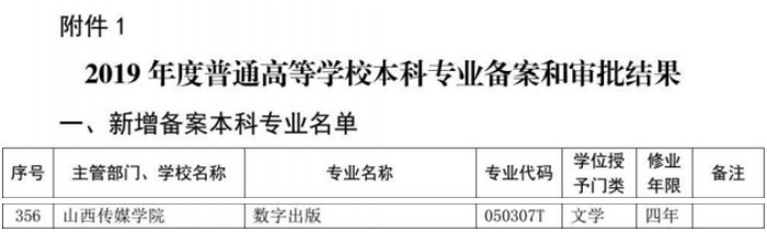 近日,教育部公布了2019年度普通高等学校本科专业备案和审批结果,我校新闻传播学院申报的数字出版专业(专业代码:050307T)获批。