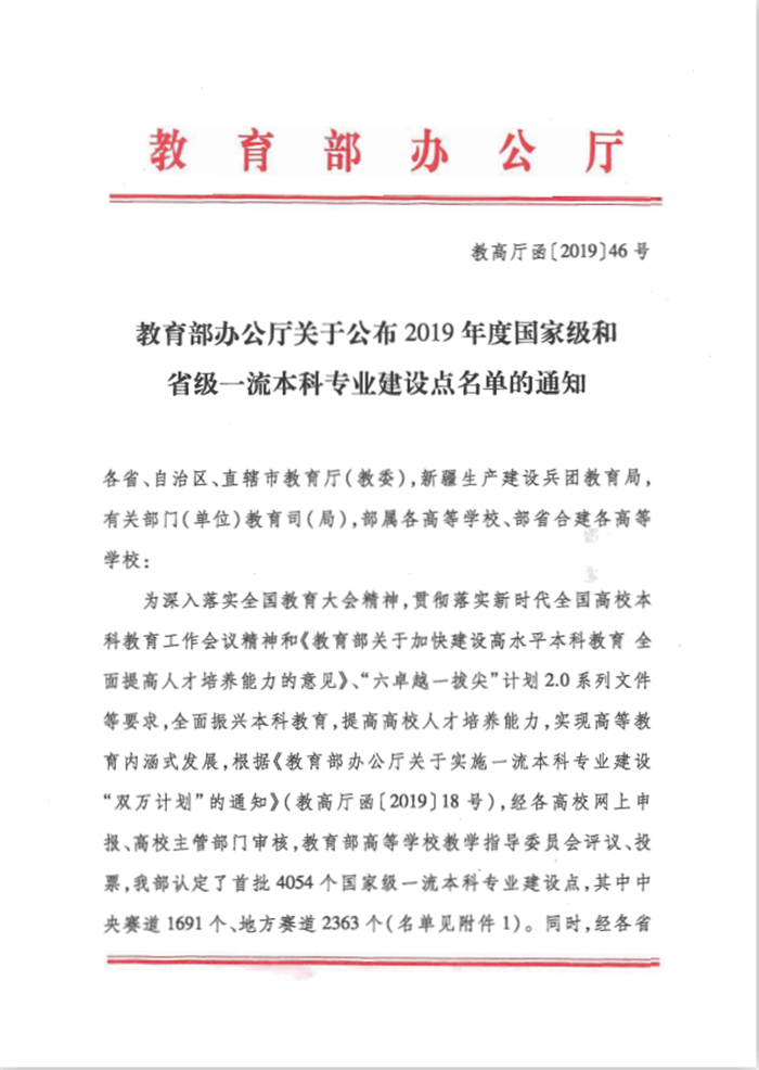 近日,教育部办公厅发布了《关于公布2019年度国家级和省级一流本科专业建设点名单的通知》(教高厅函[2019]46号),我校广告学、影视摄影与制作2个专业入选首批国家级一流本科专业建设点,动画专业入选首批省级一流本科专业建设点。