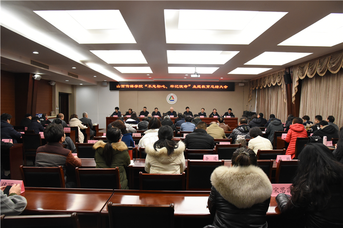 1月14日,我校召开“不忘初心、牢记使命”主题教育总结大会,深入学习贯彻落实中央和省委“不忘初心、牢记使命”主题教育总结大会精神和习近平总书记重要讲话精神,对学院主题教育进行总结,对巩固扩大主题教育成果,落实全面从严治党要求进行再部署。
