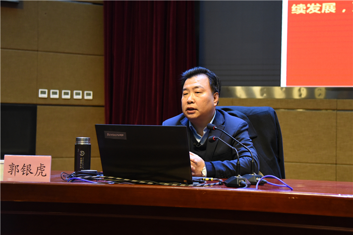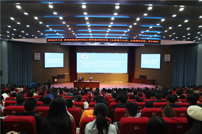 郭银虎从深入学习,深刻领会习近平主席贺信的丰富内涵;精准定位,坚定山西转型发展的决心信心不动摇;不负重托,探路引领能源革命与高质量转型发展等三个方面为在场师生做了题为《坚定信心勇担使命 探路引领不负重托——学习领会习近平主席致2019太原能源低碳发展论坛贺信精神》的专题宣讲。他指出,习近平主席的贺信,充分体现了党中央对山西工作的重视和关怀,体现了对我省开展能源革命综合改革试点的关心和支持,为全省实现不当“煤老大”、争当能源革命“排头兵”的历史性跨越,提供了强大的前进动力。他结合山西焦煤西山煤电集团公司的相关经验和做法,从侧面为师生介绍了党的十八大以来,我省在深化改革、转型发展、改善民生采取的一系列重大举措和取得的明显效果。他希望广大师生以习近平总书记系列重要讲话精神、党的十九届四中全会精神和省委省政府的决策部署为指引,将个人的理想追求融入到国家事业当中,以积极进取、顽强拼搏的精神风貌投入到学习和工作中,为推动我省资源型地区经济转型和高质量发展贡献力量。