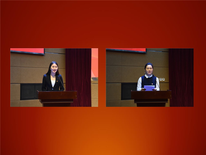 学生党员代表、播音主持学院2017级主持班杨蕊嘉,学生党支部书记代表、艺术设计学院王晓娟分别作了发言。