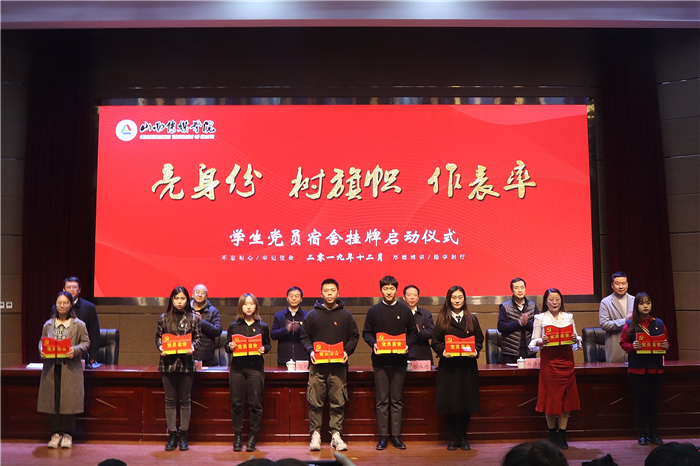 为进一步加强学生党建工作,充分发挥学生党员在日常学习生活中的模范带头作用,12月20日,我校举行“亮身份 树旗帜 作表率”学生党员宿舍挂牌启动仪式。党委副书记陈利平、副院长张永德出席,党委组织部、党委宣传部、校团委主要负责人,各二级学院党总支书记、学生党支部书记,各级学生会主席团成员,全体学生党员参加。启动仪式由学工部部长张智良主持。