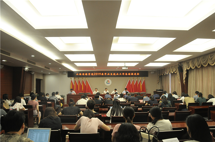 会议对我校2019届毕业生就业工作做了阶段总结。艺术设计系戏剧美术设计教研室赵丹妮、广告系申明远主任分别介绍本专业、本系毕业生就业工作开展情况。