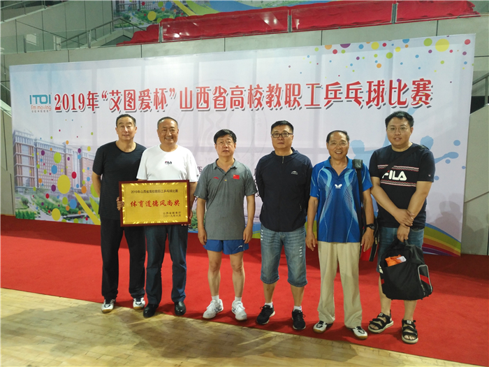 6月21日至23日,2019年“艾图爱杯”山西省高校教职工乒乓球比赛在朔州体育馆举行。我校党委书记王亦农率队,张伟、张会林、张永波等3名教职工一同参加比赛并荣获“体育道德风尚奖”。党委书记王亦农荣获校级领导男子单打第一名。