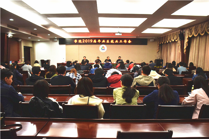 为贯彻落实2019届全国普通高校毕业生就业工作会议精神,努力实现我校毕业生更高质量和更充分就业,4月19日,我校召开2019届毕业生就业工作会议,院长李伟、党委副书记刘锐、副院长张永德、副院长郭卫东出席,相关部门主要负责人、各院系负责人、教研室主任、全体辅导员及部分应届毕业生代表参加。会议由刘锐主持。