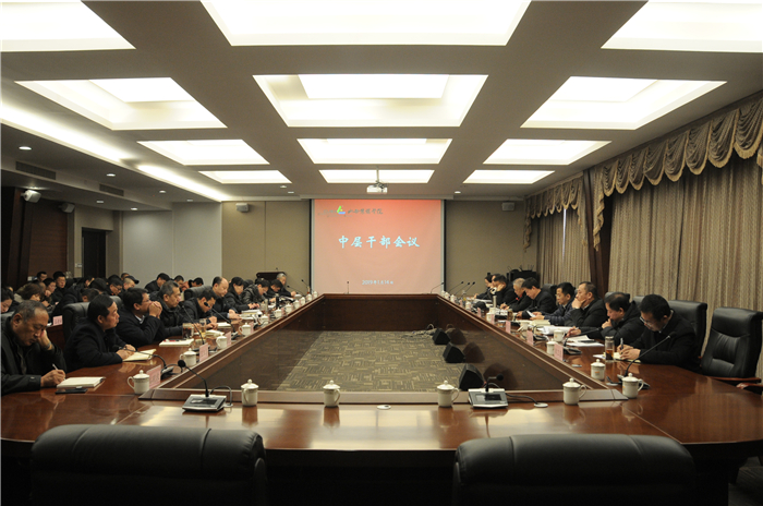 1月14日上午,我校召开全校中层干部会议,专题传达学习山西省委十一届七次全会精神、山西省委经济工作会议精神,省委书记骆惠宁、省长楼阳生在会上的重要讲话精神和全国广播电视工作会议精神,并就贯彻落实工作进行安排部署。校领导王亦农、李伟、王俊刚、刘锐、姚培林、张永德、武升平、郭卫东、王红叶出席,全体中层干部参加。会议由院长李伟主持。