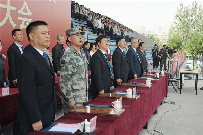 伴随着雄壮的国歌声,鲜艳的五星红旗冉冉升起,军训总结汇报大会正式拉开帷幕。