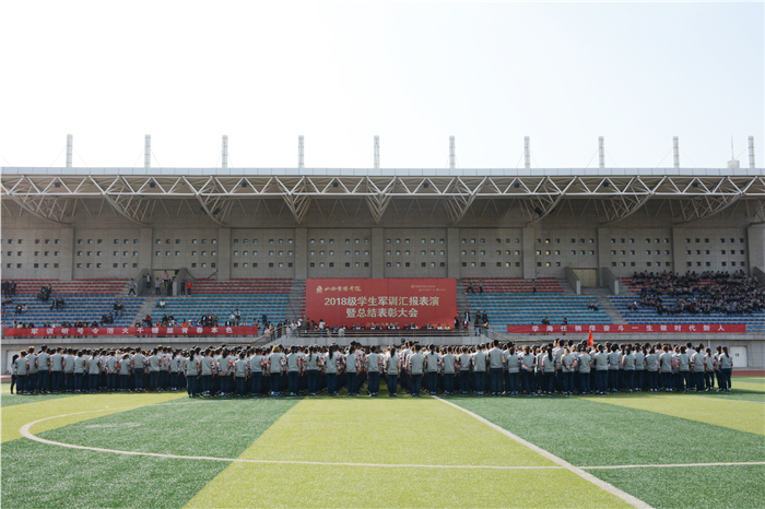 9月28日下午,我校2018级军训汇报表演暨总结表彰大会在风雨操场举行。校领导王亦农、李伟、王俊刚、姚培林、张永德和承训部队政治工作部副主任赵伟出席,学院办公室、学生处、教务处、招生处、后勤处、团委、保卫处、各院系部负责人及全体2018级新生参加。大会由副院长张永德主持。