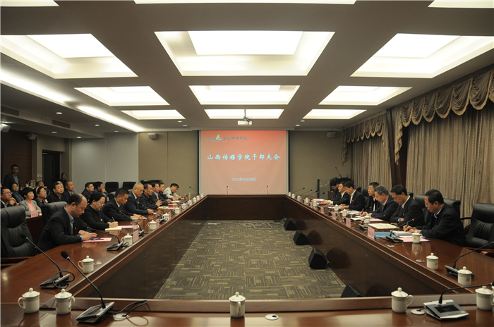 郜云强宣读了省委省政府关于我校领导班子调整的决定:李伟同志任山西传媒学院党委委员、副书记,免去王建国同志山西传媒学院党委副书记、委员职务;李伟同志任山西传媒学院院长,免去王建国同志山西传媒学院院长职务。