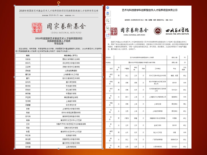 近日,从上海师范大学、四川美术学院传来喜讯,我校表演系教师李梓郡、动画学院教师李刚分别入选2018年度国家艺术基金艺术人才培养资助项目《民族歌剧表演人才培养》和《艺术与科技跨学科创新型创作人才培养》。