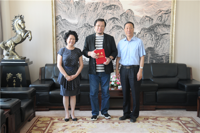 6月13日,我校聘请中国音乐学院教授马金泉为客座教授,院长王建国为马金泉教授颁发聘书,表演系主要负责人参加座谈。