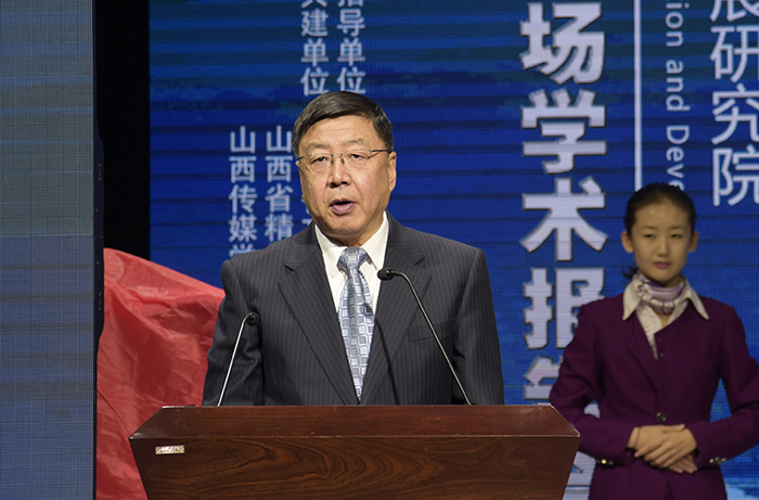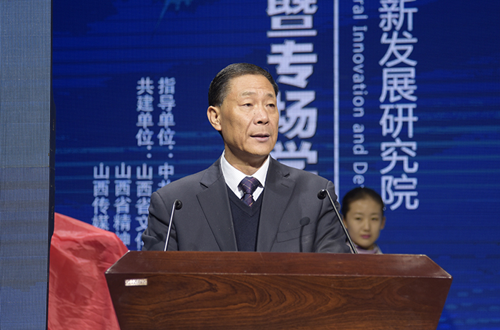 李福明副部长讲话。他首先代表省委宣传部向山西省文化创新发展研究院的成立表示热烈的祝贺。他指出,山西文化创新发展研究院的成立,是我省贯彻十九大精神,着力推进山西文化发展创新的一项重要举措,也是省文明办、文改办同山西传媒学院共同推进山西文化人才和志愿服务人才培养工作的一件大事、喜事。他在讲话中对我院近年来的取得的成绩表示肯定,并对文化创新发展研究院今后的发展提出三点希望:一是要深入学习贯彻党的十九大精神,坚持以习近平新时代中国特色社会主义思想为指导,深入开展文化国企改革、文资监管、文艺院团改革、公共文化服务等文化改革理论研究,注意总结成功案例和新鲜经验,多出研究成果,出好研究成果,为山西的文化创新发展做出理论贡献。二是要深入研究如何把山西文化资源优势转化为发展优势和竞争优势,努力在挖掘开发整合山西文化资源、打通产业链条、发展产业新业态、推动文化企业做大做强等方面发挥智库作用,为把文化产业打造成我省转型发展的支柱产业提供智力支持。三是要着力培养既懂文化、又懂产业,既会研究、又能实践的高端复合型人才,坚持走“产学研、政经社”合作发展道路,实现科研、教学、实践的有机融合,不断提升教育教学、科研创作水平,为文化强省建设不断输送人才。