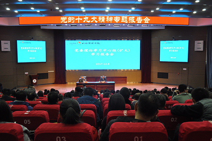 崔建周教授紧紧围绕党的十九大主题,结合工作实际和亲身经历,从“新班子、新党章、新方位、新思想、新方略、新规划、新部署”七个方面对党的十九大精神进行了系统阐释和深入解读。整个报告内容详实、见解独到、深入浅出,引经据典,生动形象,对学院进一步引深学习宣传贯彻党的十九大精神具有很强的针对性和指导性。
