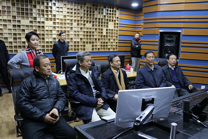 座谈会之后,在学院领导的陪同下,马建斌副主任饶有兴致地参观了学院认知实验室、演播中心和广告系“一生一品”展厅。