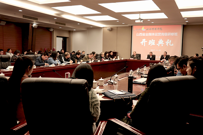 11月21日上午,由省人力资源和社会保障厅主办,省委宣传部协办,我院承办的山西省全媒体运营高级研修班在我院开班。院长王建国,副院长郭卫东出席,来自全省宣传文化系统的媒体、管理者、从业者以及高校教师参加。