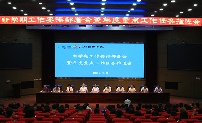 王建国校长对上学期及暑假工作作了总结,就本学期工作作了安排部署:第一,推进落实好“1331工程”建设任务。第二,加大人才引进工作力度。第三,推进人才培养模式改革。第四,落实好省政府“13710”工作制度。第五,推进基础设施建设。第六,提升安全管理意识。他就做好下半年工作提出要求:第一,进一步解放思想,在推动改革中赢得主动;第二,狠抓工作落实,确保各项任务顺利完成;第三,强化责任担当,在改革发展中检验干部。