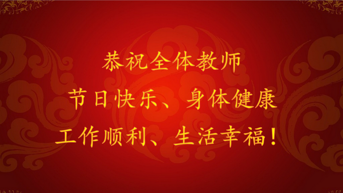 在一年中最美好的时候,我们迎来了我国第33个教师节。在此,我们谨代表学校党委、行政,向默默耕耘、辛勤工作在教学、科研、管理和服务一线的全校教师和职工,向为学校的建设与发展做出贡献的离退休老教师、老同志及家人表示衷心的感谢和亲切的问候!