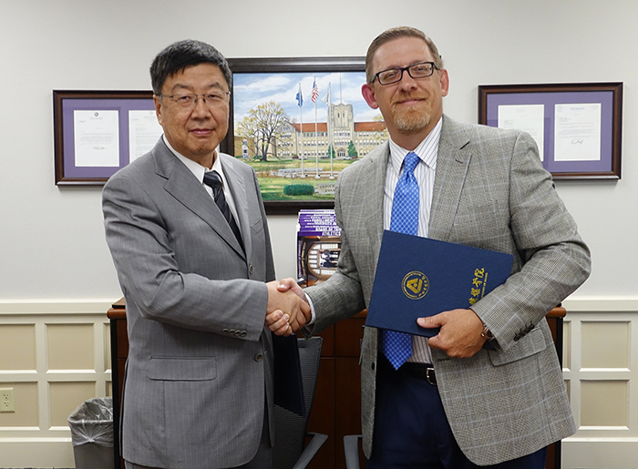2017年6月12日-13日,党委书记张汉静率团一行五人访问了美国伊凡斯维尔大学。新媒体研究中心主任王涵教授、艺术设计系副主任申明远副教授、影视动画教研室主任董立荣副教授、学院办公室副主任赵钦陪同访问。