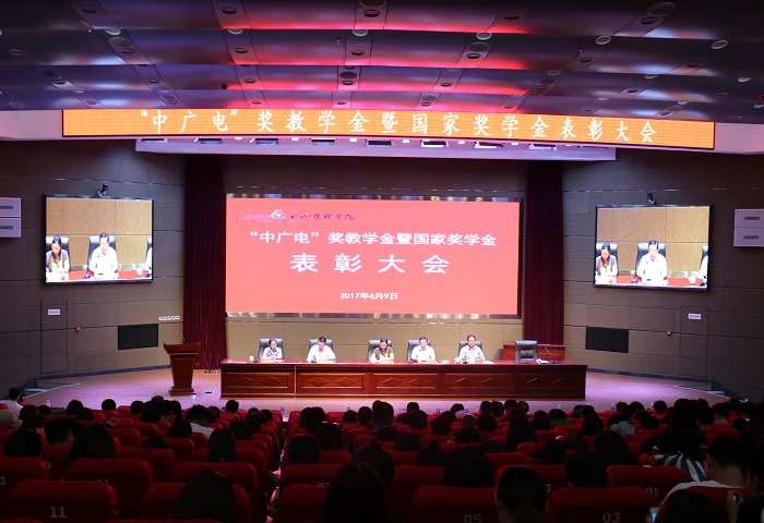 6月9日下午,我校“中广电”奖教学金暨国家奖学金表彰大会在图书馆报告厅举行。中广电广播电影电视设计院党委副书记兼工会主席李熠星、人力资源部主任唐祎,我校副校长张永德、武升平、郭卫东出席。学校各院系部主要负责人,部分教师、学生代表参加。大会由武升平副校长主持。