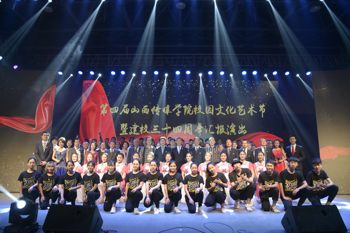 不忘初心,筑梦山传。山西传媒学院第四届校园文化艺术节暨建校三十四周年汇报演出于6月6日上午9时在学生素质拓展中心隆重举行。校党委书记张汉静,校长王建国,校党委副书记王俊刚,纪委书记李少英,副校长张永德、武升平、郭卫东、王红叶,校领导梁云阶出席。我校客座教授、国家一级演员聂建华、国家一级录音师王乐文、上海戏剧学院电视艺术学院副院长吴洪林应邀出席。学校各部门负责人、各届校友代表及师生代表欢聚一堂,共同庆祝我校三十四周年华诞。