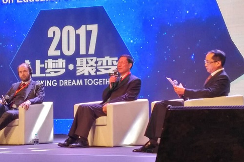 “2017国际传媒创新创业教育论坛”包括“国际工作坊创新分享会”“国际智能新媒体创新论坛”“国际创新创业教育专题会议” “VR秀”成果展等分论坛和活动。主论坛由著名主持人鲁健主持,中国传媒大学党委书记陈文申、北京协同创新研究院院长王茤祥致开幕词。王建国校长参加主论坛圆桌对话并发表讲话,分析了当前创新创业教育面临的形势和任务,介绍了我校开展创新创业教育的实践成果。