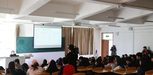 4月14日下午,山西大学外国语学院副院长纪墨芳副教授受我校国际交流合作处邀请,来校作“备战全国外语水平考试(以下称WSK)与中国国际化外语水平考试(以下称BFT)”专题讲座。全校150余名师生聆听了讲座。