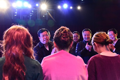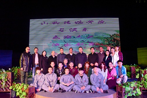 演出结束后,观看演出的有关领导与该剧全体演职人员进行交流并亲切合影。