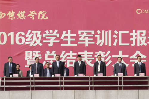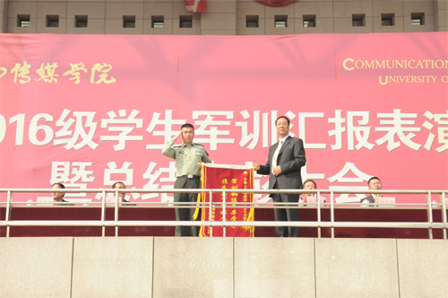 王建国校长代表学校向承训部队赠送了锦旗,感谢承训部队全体教官克服困难、努力搞好军训工作。张永德副校长作了讲话,代表学校向圆满完成军训任务的2016级新同学、向受到表彰的先进集体和个人表示热烈的祝贺。校领导梁云阶宣读了《关于表彰2016级学生军训优秀集体、先进个人的决定》。