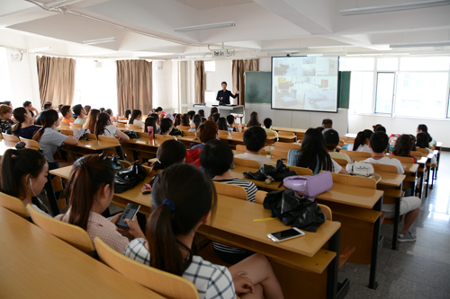 签署仪式结束后,泰国博仁大学Howell GU院长在基础教学楼B305教室就泰国博仁大学基本情况及本科硕士连读项目等事宜为同学们作了宣讲。
