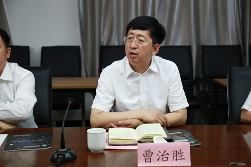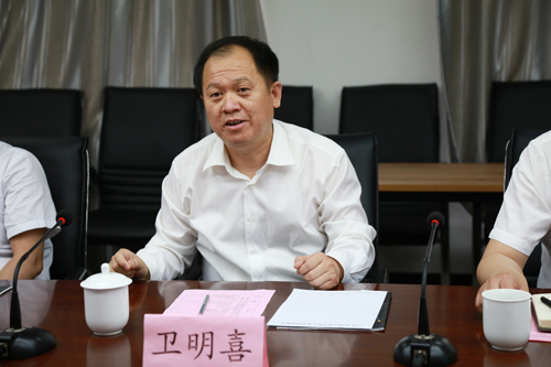 6月8日上午,平遥县委书记卫明喜、县长曹治胜一行6人和粤商公司董事长梁伟山一行4人来我校进行交流。我校党委书记张汉静、原纪委书记梁云阶及有关部门负责人参加。